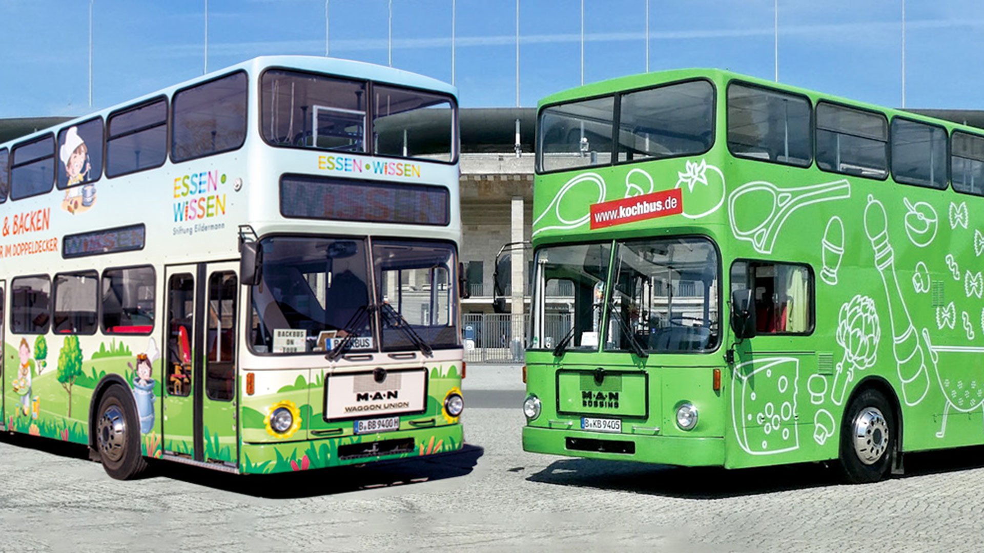 Der Bus fährt direkt vor Ihre Einrichtung. Im historischen Doppeldecker ist eine moderne Küche installiert. Am großen Tisch finden 20 Kinder genügend Platz, um selbst kreativ zu werden. Zum Abschluss wird natürlich gemeinsam gegessen.
