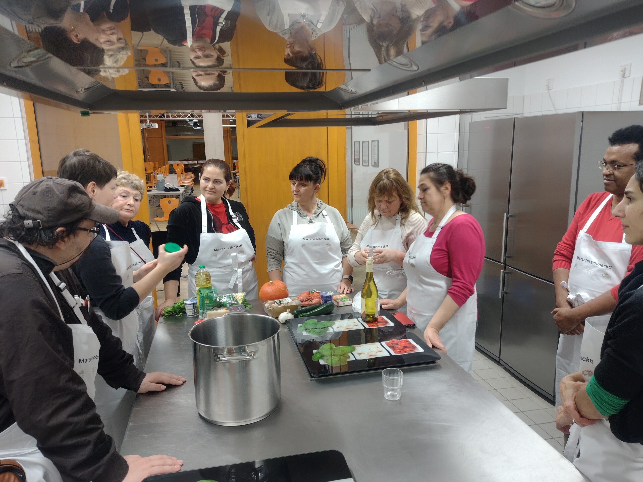 BENN – Berlin entwickelt nachhaltige Nachbarschaften – hat eine internationale Kochgruppe ins Leben gerufen, der wir als ESSEN WISSEN Stiftung Eildermann mit Rat und Tat zur Seite stehen. Die 10 Personen treffen sich alle zwei Wochen in der Kiezküche des Fördervereins der Grundschule unter dem Regenbogen und kochen, tauschen sich aus und genießen. Neben der gemeinsam erlebten Zeit, soll sich die Kochgruppe verstetigen, weshalb die Teilnehmenden sich mit jedem Termin mehr selbst organisieren müssen – über das Gericht entscheiden, Einkaufsliste schreiben, einkaufen, Schürzen waschen etc. So entstehen in geselliger Atmosphäre leckere Gerichte. Es standen bereits Kartoffelsuppe, Risotto, bulgarischer Eintopf und festliches Gebäck auf dem Speiseplan.